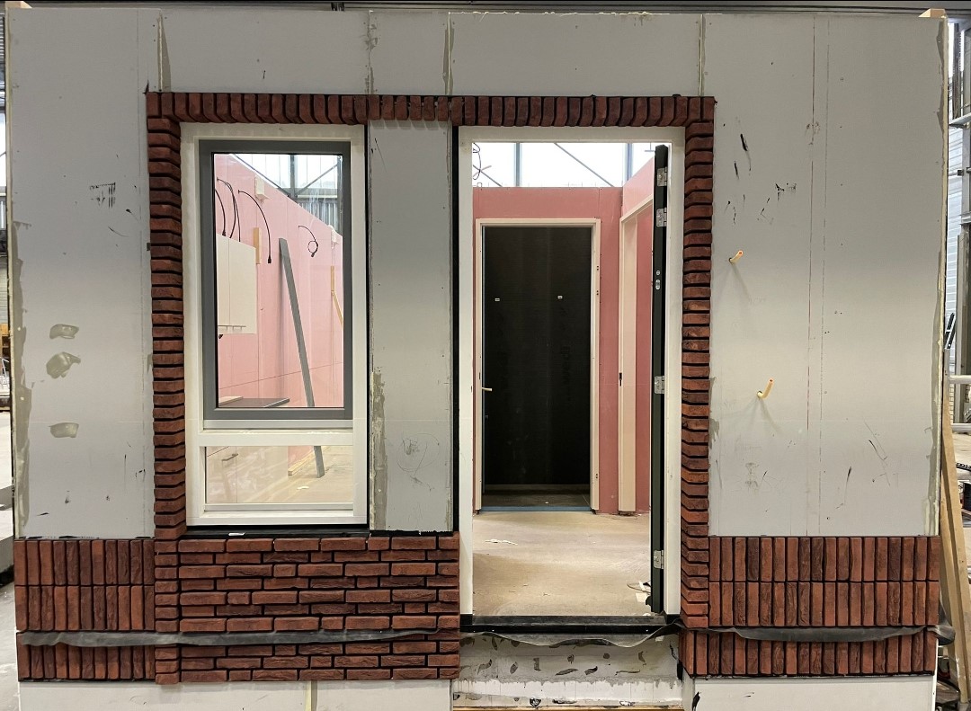 In de Rosmolenbuurt in Zaandam zijn circa 94 prefabwoningen gerealiseerd door aannemer Homesfactory. Het project omvat verschillende woningtypen, geschikt voor starters, kleine huishoudens en doorstromers, en sluit naadloos aan op de bestaande bebouwing in de wijk. Materialen, kleurstellingen en gevelopbouw zorgen voor een samenhangend straatbeeld, terwijl moderne woonvoorzieningen en duurzame oplossingen de woningen toekomstbestendig maken. Bron: https://homesfactory.nl/portfolio_page/rosmolenbuurt-zaandam/) Prefabgevels met fermacell® Powerpanel H2O De prefabwoningen zijn opgebouwd met fermacell® Powerpanel H2O op de gevels. In totaal is 1.650 m² Powerpanel H2O toegepast, inclusief bijbehorende toebehoren: